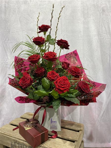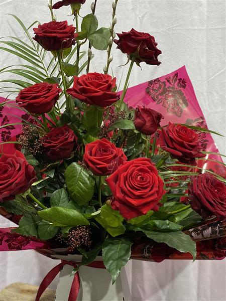 12 luxury roses a lovely large headed rose with a beautiful subtle scent. Arranged by our professional florists