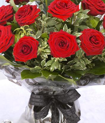 Amore Mio - (Italian) My Love make a real statement with this sumptuous aqua pack of 12 beautiful red Roses. Your love will adore the perfect red Roses in this romantic gift.