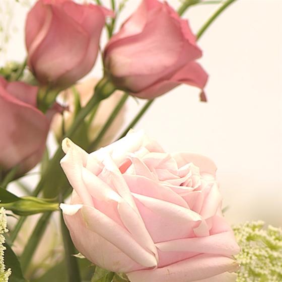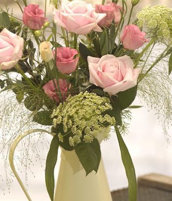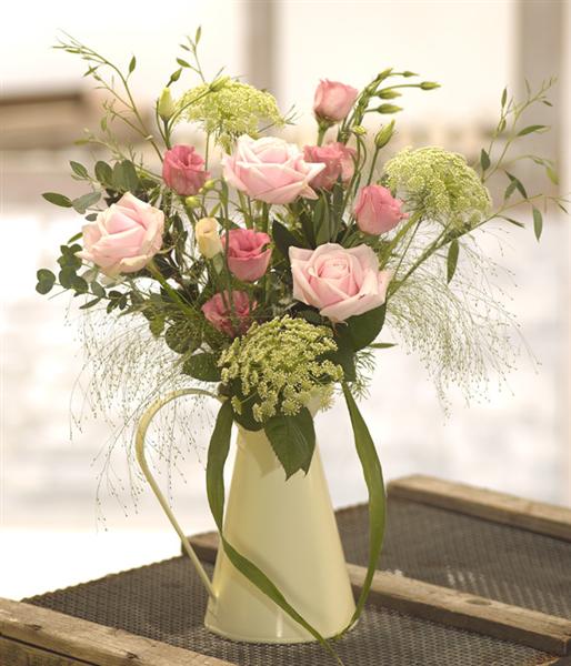 Reflect on those lazy, hazy summer days with this soft, subtle summer jug arrangement. The country style design contains Roses, Lisianthus and white Dill flowers.