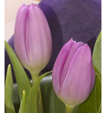 Mauve Tulips beautifully presented in a cream gift bag. Stunningly simple.