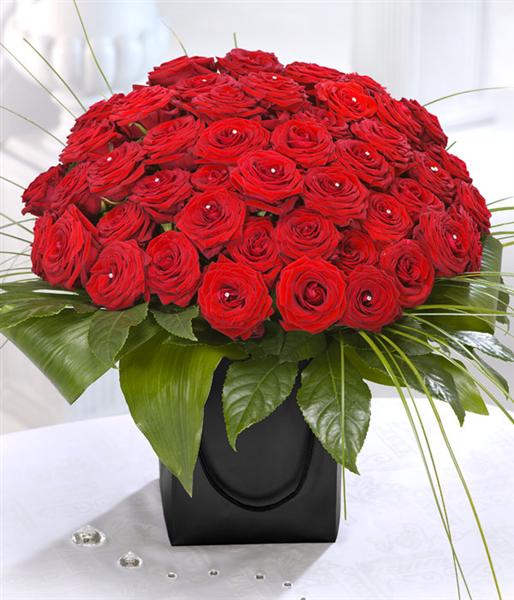 The ultimate I Love You gift. A generous aqua pack of romantic red Roses with a sprinkling of Diamante.