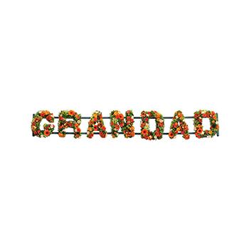 A gorgeous mix of bronzes, oranges and greens. Orchids, Roses, Germini, Hydrangea, Chrysanthemums and Carnations form the name GRANDAD. Stand included.