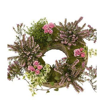A naturally beautiful pink Rose and Heather wreath with flourishes of Thyme and Ivy.