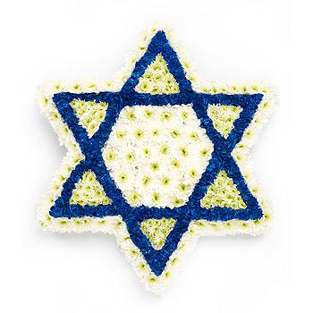 A white Star of David Chrsyanthemum and Carnation tribute