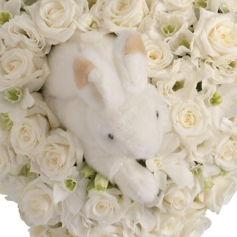 White Rose, White Spray Rose, White Dendrobium Orchid, White Eucharis Lily, White Hydrangea, White Lisianthus, Solid Heart 17"